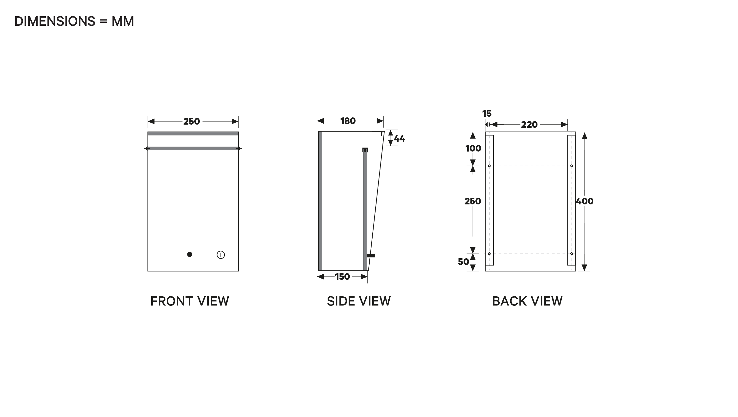 - The Wall Mounted model is front opening and designed to fix directly onto a wall or fence.